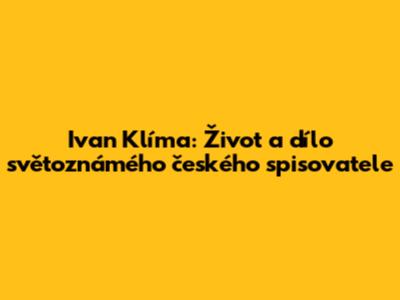Ivan Klíma: Život A Dílo Světoznámého Českého Spisovatele