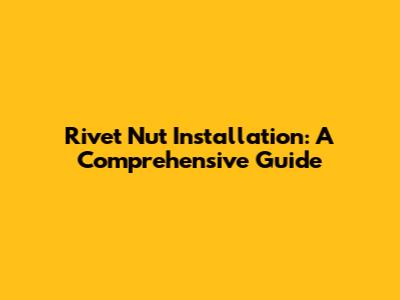 Rivet Nut Installation: A Comprehensive Guide
