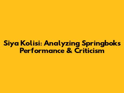 Meta: Analyzing Siya Kolisi's Springboks performance amid criticism. Unpacking his role, impact, and future with the team.